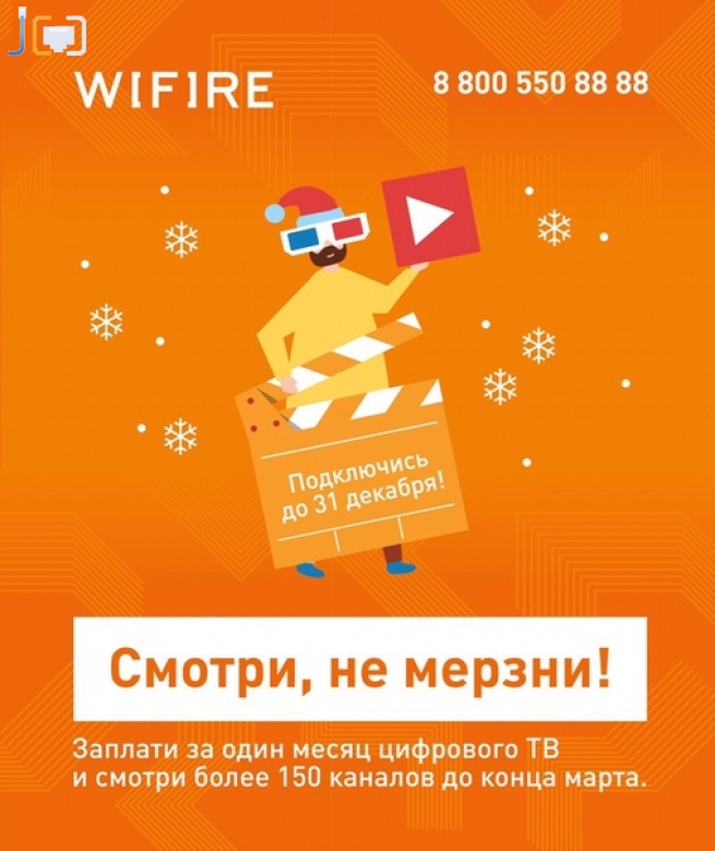 Тогда мы идем к Вам! А лучше Вы к нам. На портале JustConnect как раз появилась очень выгодная новинка – пакет «Wifire Эксклюзивный 100 + WifireTV120+». Предложение включает в себя интернет на оптимальной скорости 100 Мбит/с и целых 143 телеканала, которые будут очень кстати на длинных зимних каникулах. Вы и так сильно потратились на подарки близким и боитесь, что Вам не хватит денег на оборудование? Не стоит беспокойства! Wifire Вам его отдаст просто так, безвозмездно — в залог Ваших теплых дружеских отношений в дальнейшем.