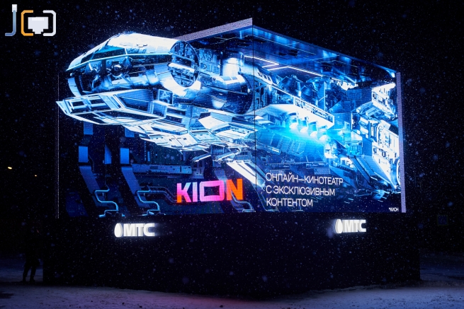 В подмосковном Одинцово МГТС (или МТС на новый лад) установил пилотную площадку для 3Dрекламы. 7-метровый куб при помощи оптических иллюзий создает эффект огромных объемных предметов, которые можно потрогать. Кажется, что картинка выходит за пределы экранов и движется, настолько реалистично, что это можно смело назвать предшественником голограммы.